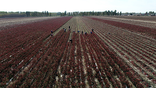 近年来,辽宁辽中农信联社为支持乡村振兴发展,将信贷资金重点向特色农业产业倾斜,全力为农民增收致富提供资金保障。图为金秋时节,辽中区牛心坨镇连三湾村农民正在收割丰收的红辣椒。