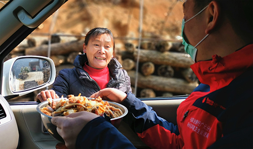 原贫困户肖大姐为农业银行广元分行帮扶干部送上亲手制作的饭菜,以表谢意