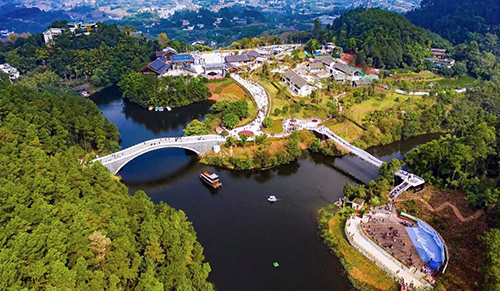 农发行四川自贡市沿滩区支行立足新发展阶段,全力服务乡村振兴,近日再次向自贡建工建设工程有限公司投放4480万元旅游扶贫贷款,用于支持自贡市尖山乡村振兴示范区——核心景区项目建设。截至目前,该支行已累计向该项目投放旅游扶贫贷款2.48亿元,为地方文旅融合提供强金融支撑。图为该支行信贷支持的自贡市尖山乡村振兴示范区——核心景区项目建成图。