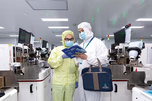 浙江农商银行系统海宁农商银行推出“同心抗疫·助企纾困”12项举措,给予普惠型小微企业“足额、便捷、便宜”金融服务,专列30亿元利率优惠的“防疫应急贷”信用贷款,为小微企业让利5400余万元,为2.5万商户减免费用1600余万元。图为该行客户经理走访国家高新技术企业——浙江亚芯微电子股份有限公司,上门提供“防疫应急贷”普惠金融服务。 (王生毅)
