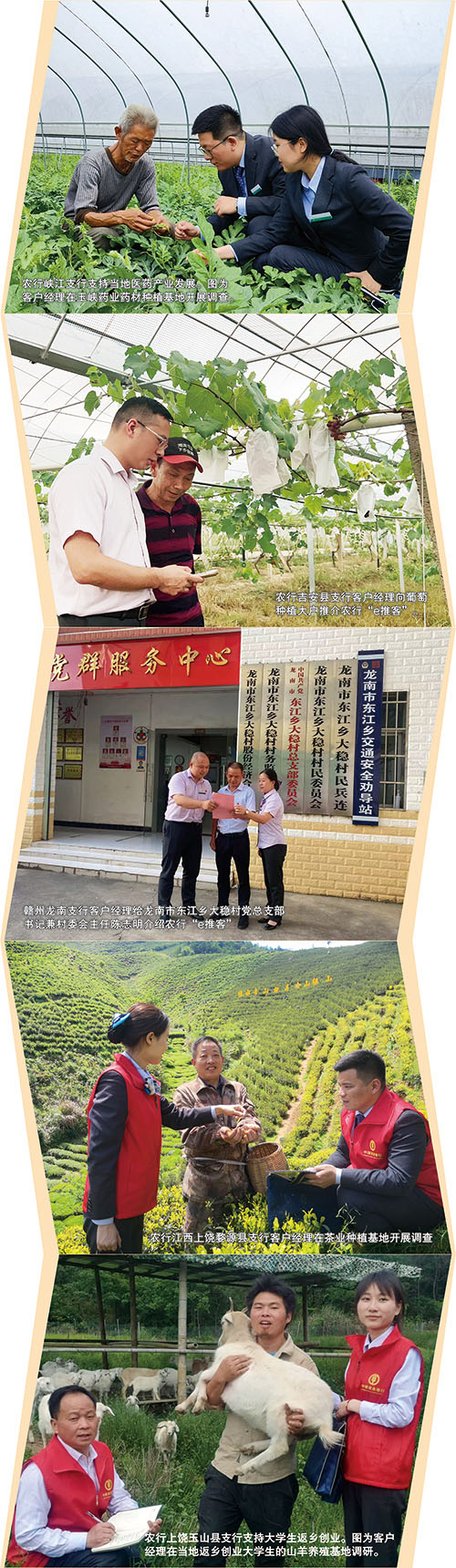据悉,农业银行江西省分行在服务普惠金融方面突出做到了“三个”创新。创新提升基础金融服务,构建“人工网点+自助网点+惠农通服务点+互联网线上渠道+流动服务”五位一体的服务渠道网络,延伸服务触角,如为赣南山区190个金融服务空白乡镇提供移动金融服务,掌银、网银、扫码支付等互联网服务渠道100%覆盖。创新推出特色金融产品,围绕乡村振兴、服务实体经济,鼓励分支行大胆探索创新,推出了一批普惠特色产品、服务模式,其中:扶贫信贷产品15个、小微融资产品6个、特色化服务模式8个。创新优化支持建设方式,制定了贯彻落实监管部门支持普惠金融改革试验区(赣州、吉安)建设指导意见的15条工作措施,从信贷授权、流程优化等方面。