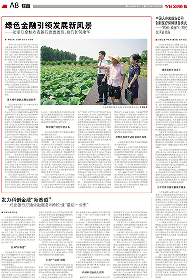 在支持发展绿色生态产业上,我行围绕“美丽乡村”,积极推动绿色信贷业务向农村地区延伸。一是加大重点农作物病虫害绿色防控产品和技术、当地可降解农膜研发推广、发展节水农业和旱作农业等方面金融服务力度,聚焦农村清洁能源产业发展,积极推广“美丽乡村贷”“农机贷”等信贷产品,加强对生态修复、空气净化、能源结构调整、交通结构调整等方面的金融支持。二是加强农村水土治理、农田水利建设、农业产业化基地等涉农基础设施项目的支持力度,加大对绿色农业、循环农业等领域的金融支持,开辟“优先准入、优先审批、优先支持”绿色通道,助力“美丽乡村”绿色农业发展。三是不断强化公司金融绿色低碳创新,加强林权抵押、公益林收益权质押等减碳、吸碳绿色贷款类产品开发,探索排污权抵质押、供水收费权质押等担保方式创新,扩大减碳、吸碳权益的抵质押范围。