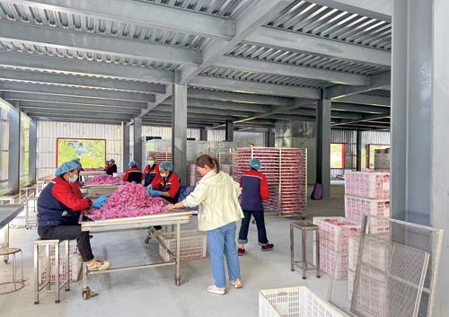 小金县夹金山清多香野生资源开发有限责任公司分拣收购玫瑰鲜花场景