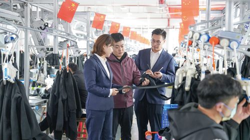 浙江农商联合银行辖内浦江农商银行立足区域产业特色,深入开展“服装针织季”网格化大走访活动,主动对接企业,精准摸排金融服务需求。截至11月末,该行支持的绗缝针织、服装加工企业达1114户,发放贷款余额达27.66亿元,有效缓解了相关市场主体在原料采购、设备升级、用工扩产等方面的资金压力,以精准金融服务助力地方特色产业高质量发展,为产业转型升级注入新动能。图为该行工作人员深入生产一线,详细了解企业生产经营情况及融资难点。